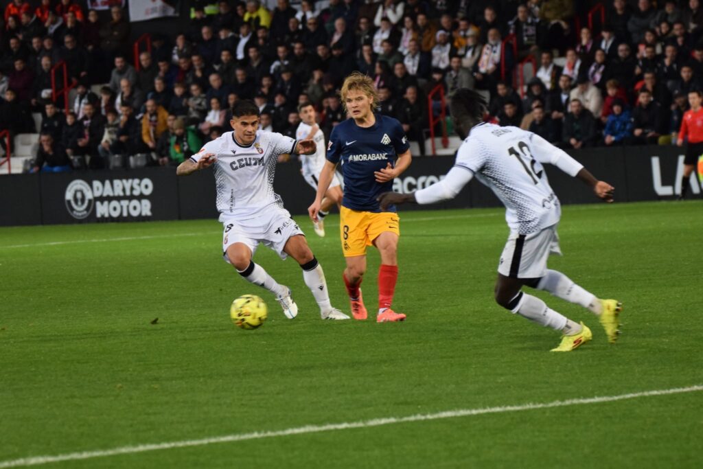 Los visitantes, sin embargo, apenas inquietaron a Guille Vallejo, mientras que el Ceuta sufría para enlazar pases y asentarse en campo contrario. Bodiger firmó una acción clave al cortar una aproximación peligrosa del conjunto tricolor, en una fase del encuentro dominada por la imprecisión y la falta de ritmo.