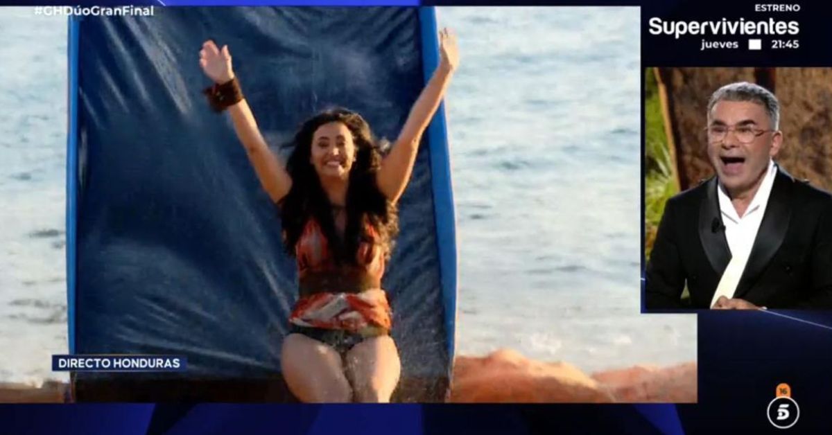 Desde Honduras, María Lamela transmitió mucha energía en su primera conexión con Jorge Javier Vázquez. Para demostrar que está preparada para las condiciones del reality, se lanzó por el tobogán más alto que ha tenido el programa, acabando cubierta completamente de barro.