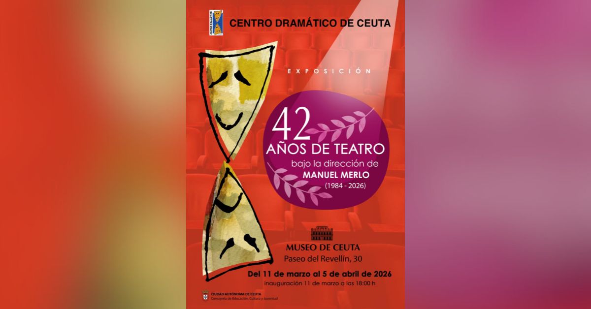 CEUTA – La escena cultural ceutí celebra hoy un hito con la inauguración de una exposición dedicada a la trayectoria del teatro local. A las 18:00 horas, el Museo de Ceuta, ubicado en el Paseo del Revellín, inaugura «42 años de teatro bajo la dirección de Manuel Merlo», una exhibición disponible desde el miércoles 11 de marzo hasta el 5 de abril. Esta exposición rinde homenaje a la labor del Centro Dramático de Ceuta, entidad que recientemente cumplió más de cuarenta años.
