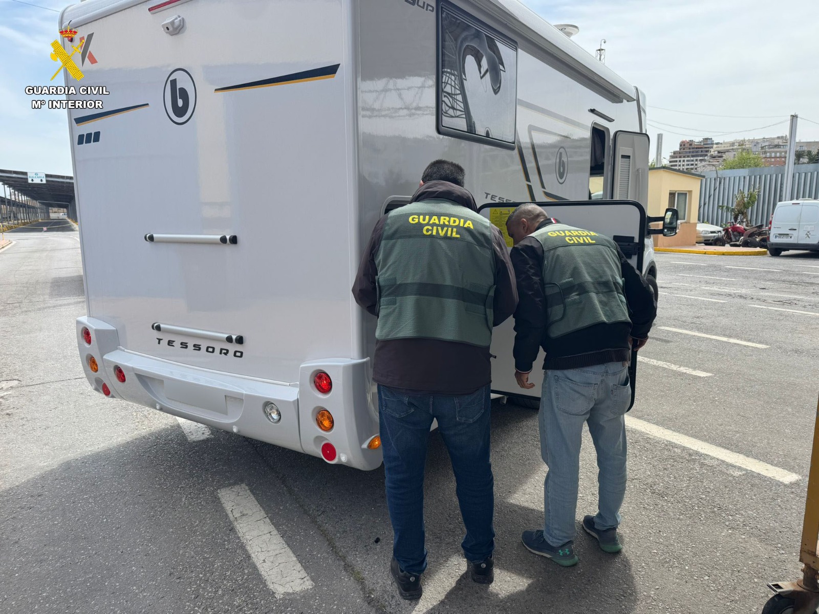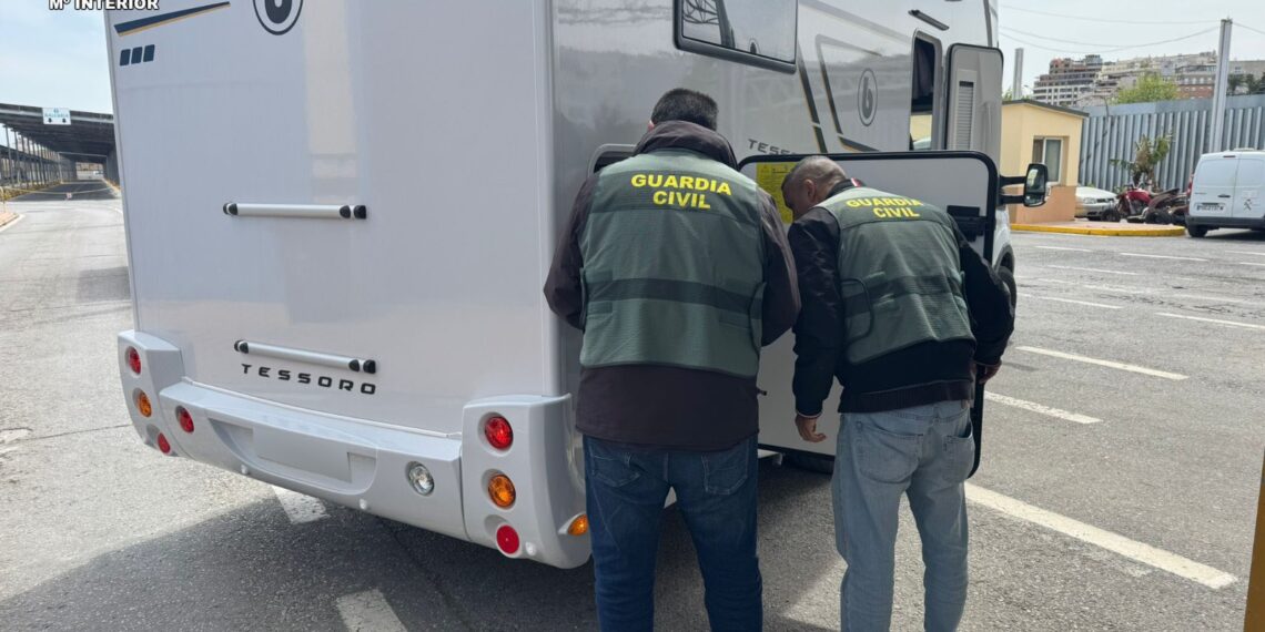 La Guardia Civil ha detenido a una mujer en Ceuta tras interceptar una autocaravana que transportaba aproximadamente 800 kilogramos de hachís ocultos en un doble fondo.