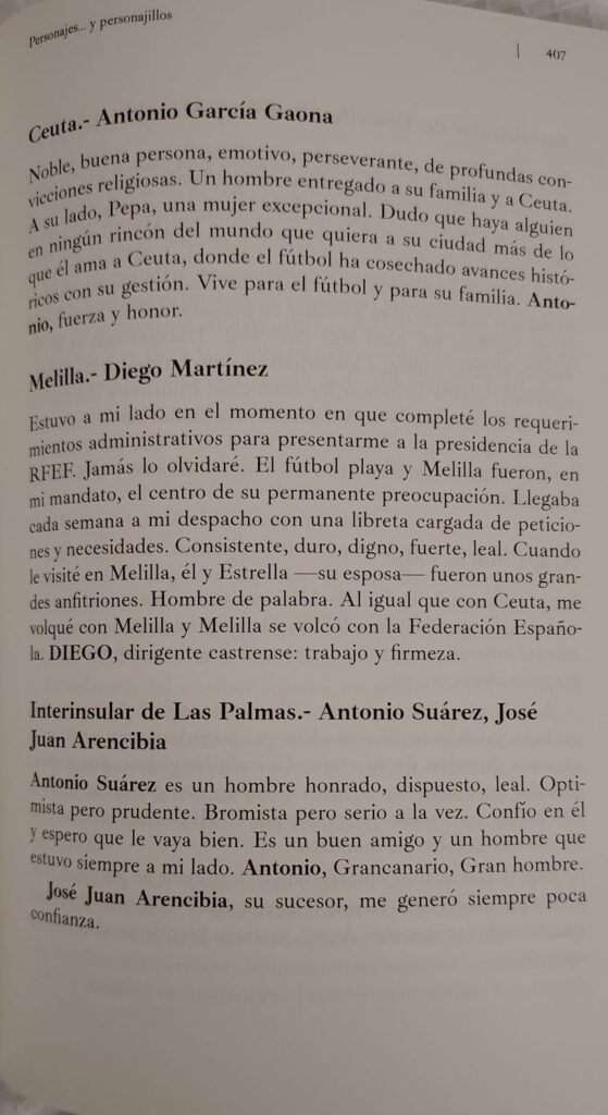 El nuevo libro de Luis Rubiales, expresidente de la Real Federación Española de Fútbol, dedica un capítulo especial al presidente de la Federación de Fútbol de Ceuta, Antonio García Gaona, a quien define con una mezcla de admiración personal y reconocimiento institucional. Rubiales no escatima elogios hacia el dirigente ceutí, al que retrata como una figura clave en los avances del deporte local.